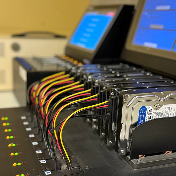 通電する記録媒体については、NIST(米国総務省規格)形式準拠のソフトウェア、通電しないものについては、専用のマシンを用いての磁気破壊あるいは物理破壊処理を行い、データを完全消去いたします。
