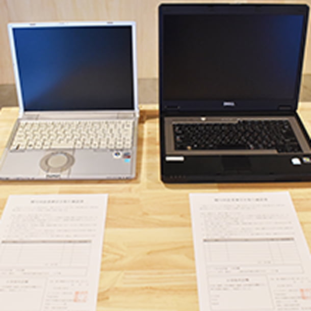 データ消去証明書も無料で発行しております。作業場所や、作業日、お引き取りしたパソコンのモデル名などを含めた簡易版リスト形式証明書をご用意しております。